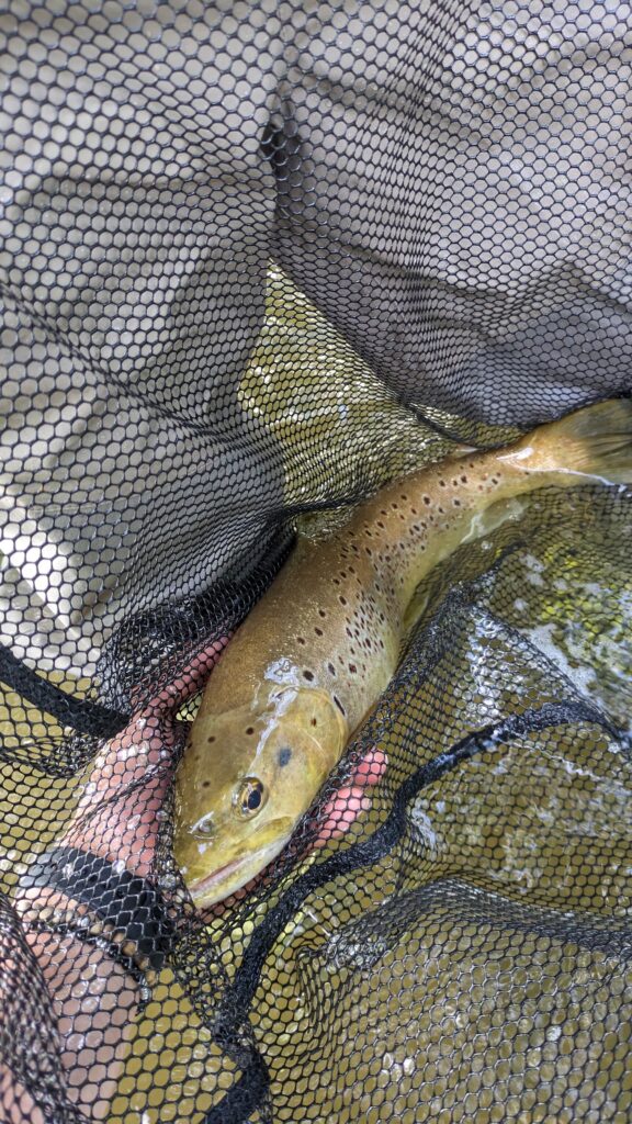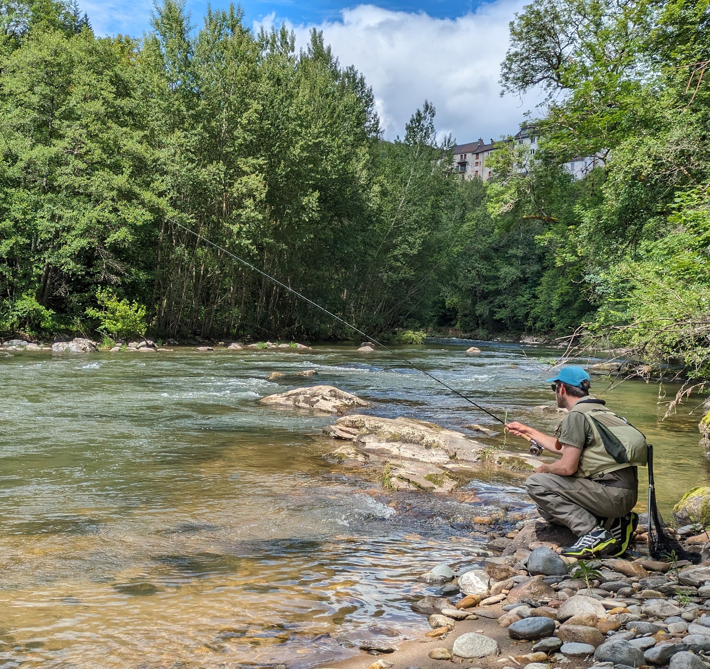 Objectif visé : savoir lire la rivière et les courants, savoir où et comment poser sa mouche sur l’eau, savoir faire dériver sa mouche le plus naturellement possible. Connaitre les comportements de la truite suivant les conditions. Et idéalement : savoir ferrer le poisson, le ramener à l’épuisette et le relâcher dans les meilleures conditions.